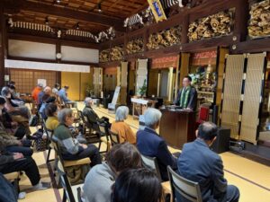 遠方からお越しいただく方、歩くのがご不自由でタクシーで駆けつけていただく方、初めて法話をお聴きいただく方、毎回の法話を楽しみにお越しいただく方などご参加いただきありがとうございます。毎年のお寺の行事ではありますが、同じことはありません。まさに一期一会の時間です。1つの場を共有して感じる経験は、人生をより豊に感じることと思っています。