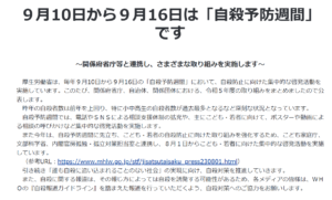 自殺予防週間(9月10日から16日)をご存知ですか。