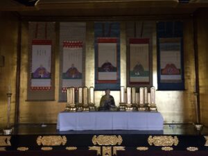 真宗では親鸞聖人のご命日を縁としてお勤めする報恩講があります。高田本山では毎年1月9日から16日までお勤めいたします。各寺院も毎年一番大切な行事としてお勤めしています。(妙華寺では12月の第1日曜日です)